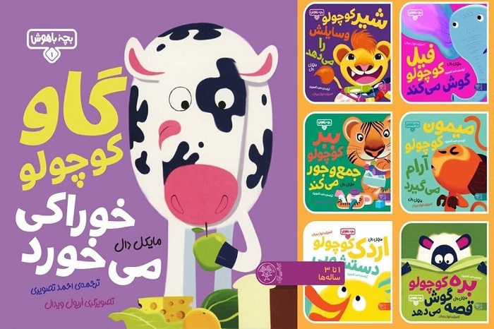 گاو کوچولو خوراکی میخورد، بره کوچولو قصه گوش میدهد، شیر کوچولو وسایلش را میدهد، میمون کوچولو آرام میگیرد، فیل کوچولو گوش میدهد، ببر کوچولو جمعوجور میکند و … عناوین مجلدات این مجموعه است که هر کدام 24 صفحه دارند.